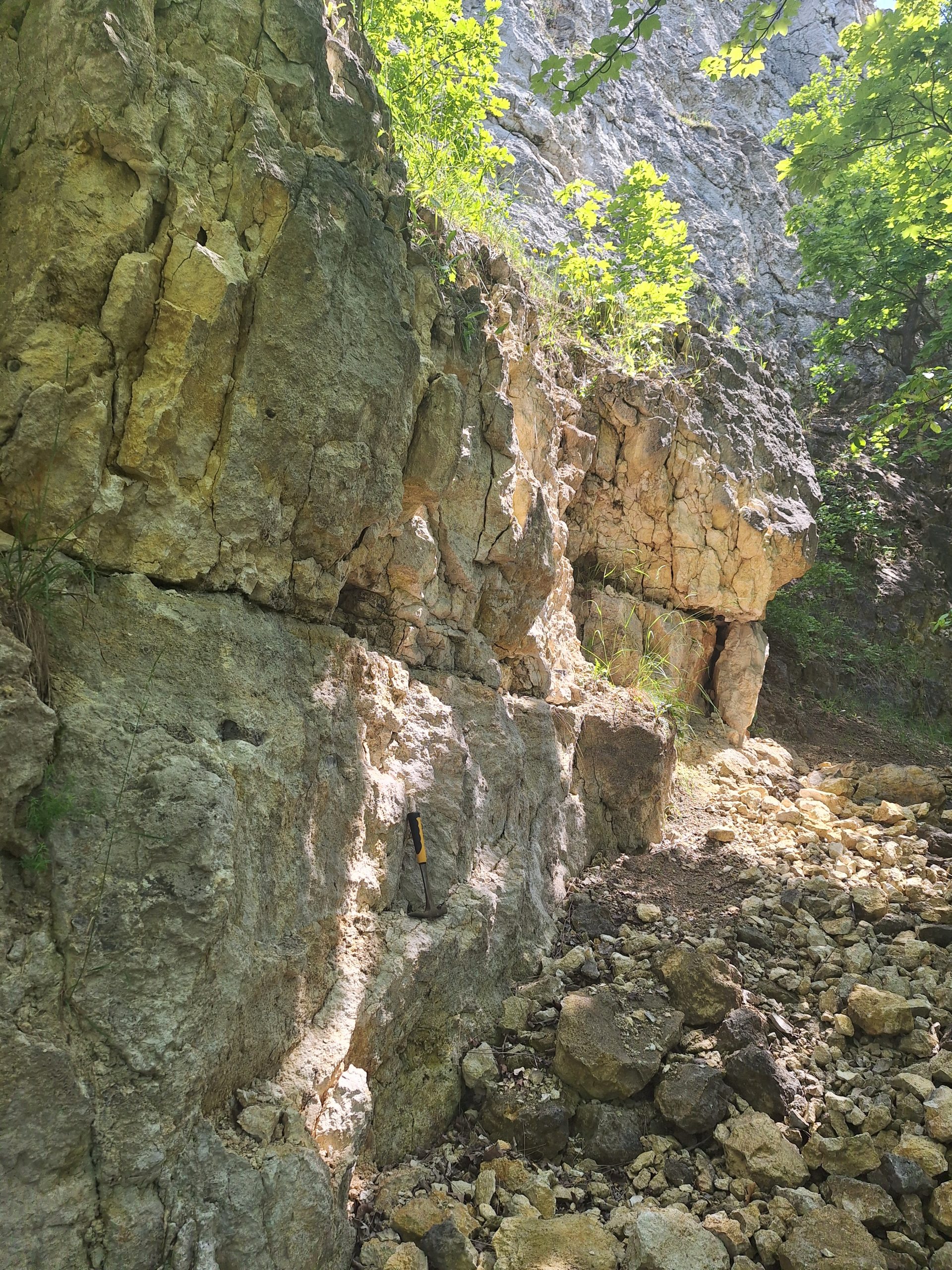 Południowe ściany są najwyższe (do 36 m), z bardzo dobrze widocznymi poziomami konkrecji krzemionkowych. W środkowej części na samej górze ściany możemy dostrzec warstwy miąższości około 2 m o odmiennym, szaro-zielonkawym kolorze. Są to młodsze skały margliste, wieku późnokredowego. Wypełniają one bardzo wyraźnie widoczny kanał erozyjny, kształtem przypominający koryto rzeczne. Pod ścianą utworzyło się osypisko o wysokości do 15 m. Znajdują się w nim okruchy wapieni i konkrecje krzemionkowe, a także bloki szarozielonych margli glaukonitowych zawierających faunę (fragmenty małży i jeżowców), wapieni zlepieńcowatych i białych margli z czertami.